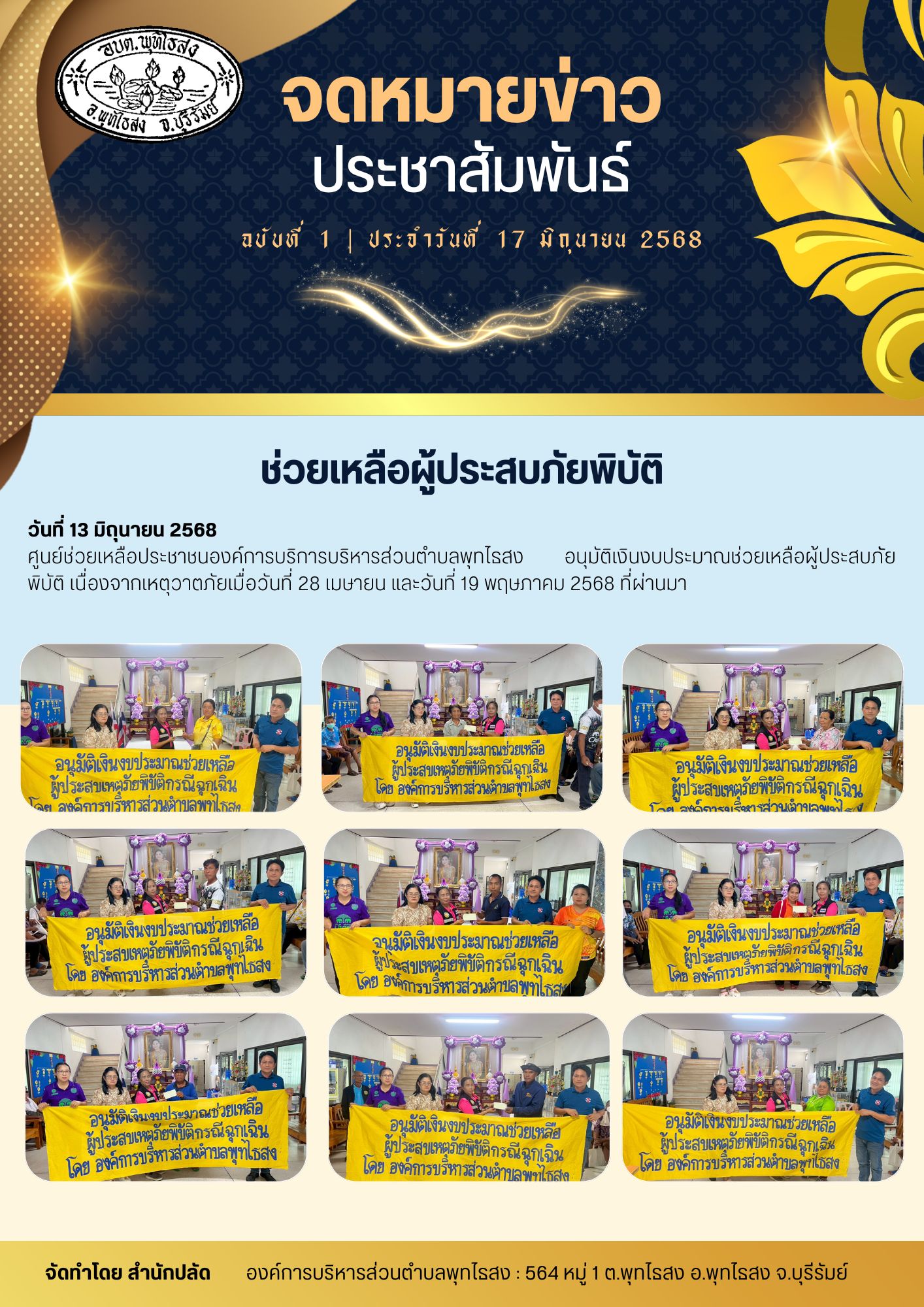 ช่วยเหลือผู้ประสบภัยพิบัติ วันที่ 28 มิถุนายน 68 และวันที่ 19 พฤษภาคม 68...