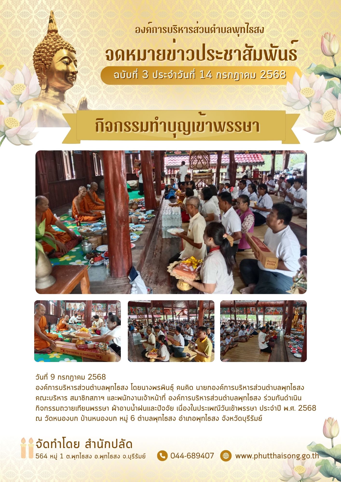 กิจกรรมถวายเทียนพรรษา เนื่องในวันเข้าพรรษา ประจำปี 2568...