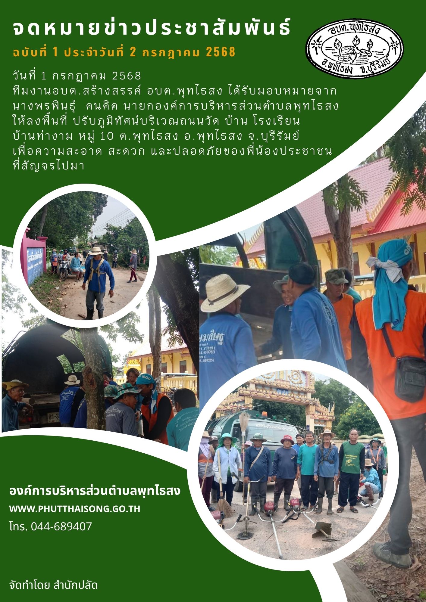 ทีมงานอบต.สร้างสรรค์ อบต.พุทไธสง ลงพื้นที่ปรับภูมิทัศน์บ้านท่างาม หมู่ 10 ...