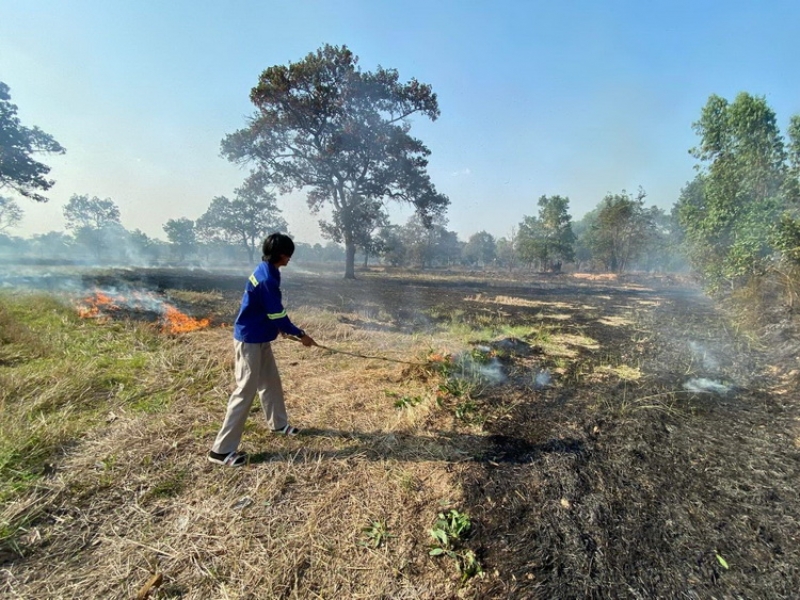 เจ้าหน้าที่องค์การบริหารส่วนตำบลพุทไธสง ออกปฏิบัติการระงับเหตุเพลิงไหม้ บริเวณบ้านโนนขิงไค - บ้านชาติ